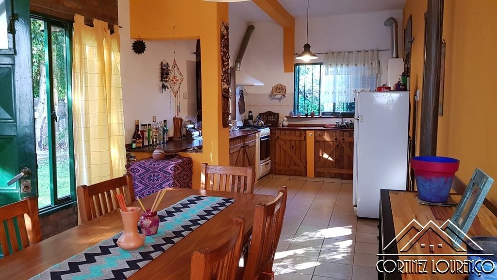 Cocina-comedor con bajo mesada de madera, muy luminosa
